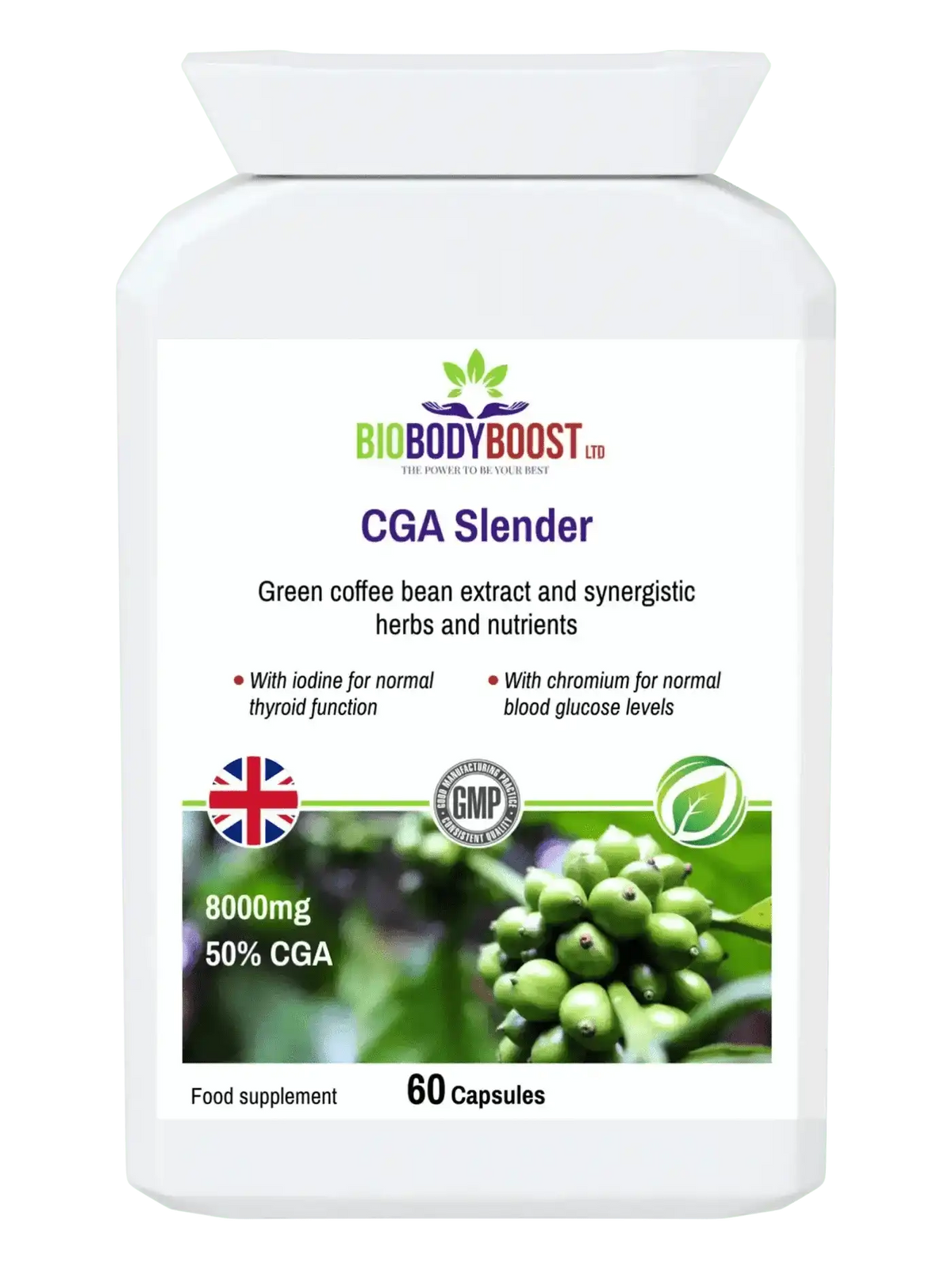 This formula provides chromium which contributes to normal macronutrient metabolism and to the maintenance of normal blood glucose levels. Iodine contributes to normal energy-yielding metabolism. The blend includes green coffee bean extract with 50% chlorogenic acid.